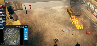 接著我們再把鼠標(biāo)移到火堆,右鍵一下火堆,消防員就會跑去最近的消防栓邊上接上水槍進(jìn)行滅火,在第一個消防員開始滅火之后,為了防止火源附近的材料因溫度過高從而發(fā)生引燃,我們需要再派遣一個消防員拿上水槍對旁邊的油桶進(jìn)行降溫..