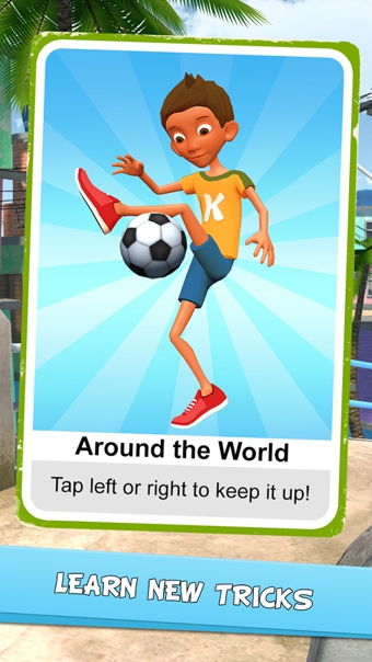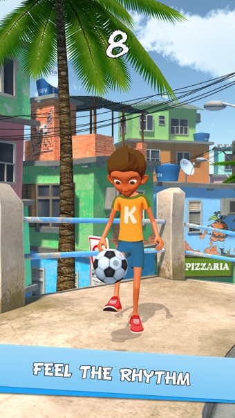《顛球冠軍 Kickerinho》是一款充滿勵(lì)志色彩的足球題材的休閑游戲。kickerinho想成為里約熱內(nèi)盧這座美麗的城市中最好的顛球達(dá)人,你能幫助他實(shí)現(xiàn)這個(gè)夢(mèng)想嗎?游戲中你要幫助kickerinho去顛球獲得分?jǐn)?shù)。游戲操作簡(jiǎn)單,只需左右點(diǎn)擊屏幕即可完成顛球。如果你順利完成一定數(shù)量的顛球,還會(huì)有更意想不到的效果哦。喜歡這款簡(jiǎn)單的游戲嗎?快點(diǎn)加入進(jìn)來(lái)吧!