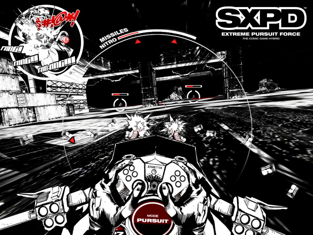 《SXPD漫游世界 SXPD The Comicbook Game Hybrid》是一款將漫畫有機結(jié)合的獨特競速游戲,游戲內(nèi)容分為劇情模式和挑戰(zhàn)模式,都需要通過相應(yīng)關(guān)卡后才能解鎖。游戲難度相當(dāng)大,習(xí)慣了《極品飛車》等傳統(tǒng)賽車游戲的橫沖直撞,想要上手本作則是需要一定的時間。本作中玩家操控的女警一旦碰上障礙物就會在碰撞前很小的一段距離重新開始,而且游戲中玩家不僅僅需要操控前進方向,還需要開火攻擊敵人,若是追不上敵人則還需要雙手同時按在左右兩邊開啟氮氣加速,這樣就使得操作更加困難了。挑戰(zhàn)模式則是需要在限定的時間里擊敗敵人,本來就不算簡單的操作再加上時間的限定,想要完成相當(dāng)不易。