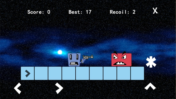 《爆炸人!( Bang Man! )》是一款游戲背景設(shè)定在太空里面的一個(gè)射擊游戲,游戲里面你扮演一快深藍(lán)色小方塊和平臺上的外星人激戰(zhàn)。每消滅一個(gè)敵人,接下來降落的敵人速度都會(huì)提升一次,當(dāng)然,掉落的也不一定全是敵人,也可能是可以使敵人暫時(shí)降速的有力道具。
