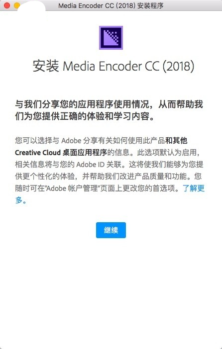 3.點(diǎn)擊好即進(jìn)入media encoder cc 2018的安裝向?qū)?,如下圖