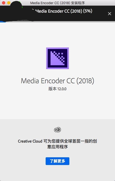 7.稍等一會(huì)兒就會(huì)完成Media Encoder CC 2018 mac版的安裝了