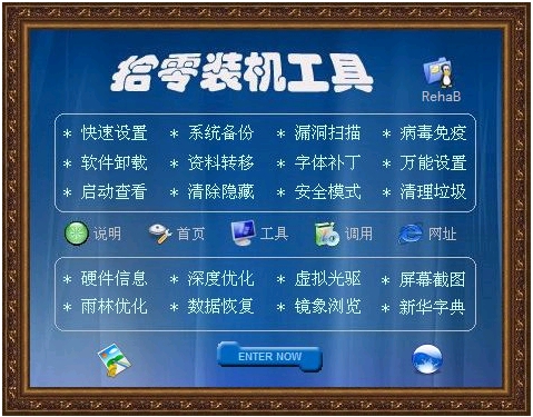 拾零裝機工具箱 V1.0 簡體中文綠色免費版 本工具箱為你提供了數(shù)十款綠色實用小軟件,十?dāng)?shù)條常用系統(tǒng)調(diào)用命令,數(shù)十個常用網(wǎng)址。功能齊全,制作精良,界面美觀,操作簡單。實乃裝機人員,電腦愛好者居家珍藏及饋贈親友之佳品