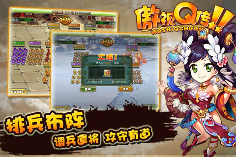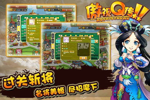 傲視Q傳,你就是完美主公!三國題材養(yǎng)成策略大作!完美的武將養(yǎng)成體系,獨特的競技組合設(shè)定,豐富的戰(zhàn)役故事情節(jié),以軍團、養(yǎng)成、交互為核心,通過發(fā)掘培養(yǎng)武將、升級裝備、通關(guān)副本、與他人競技,讓玩家得到收集武將的樂趣、體驗豐富關(guān)卡的樂趣和玩家間激戰(zhàn)的樂趣。想要追尋三國時代血與火征程的就快加入吧!【游戲玩法】