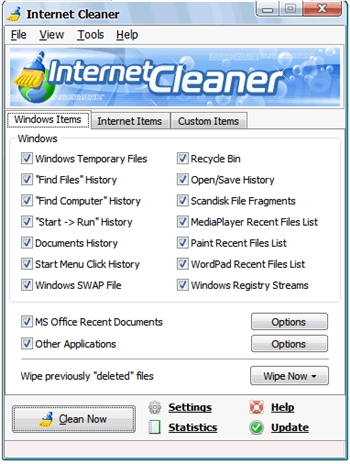 Internet Cleaner 是一個(gè)優(yōu)秀的系統(tǒng)垃圾文件清理工具!他可以有效的清楚IE和Windows產(chǎn)生的垃圾文件,使你的系統(tǒng)再次煥發(fā)活力