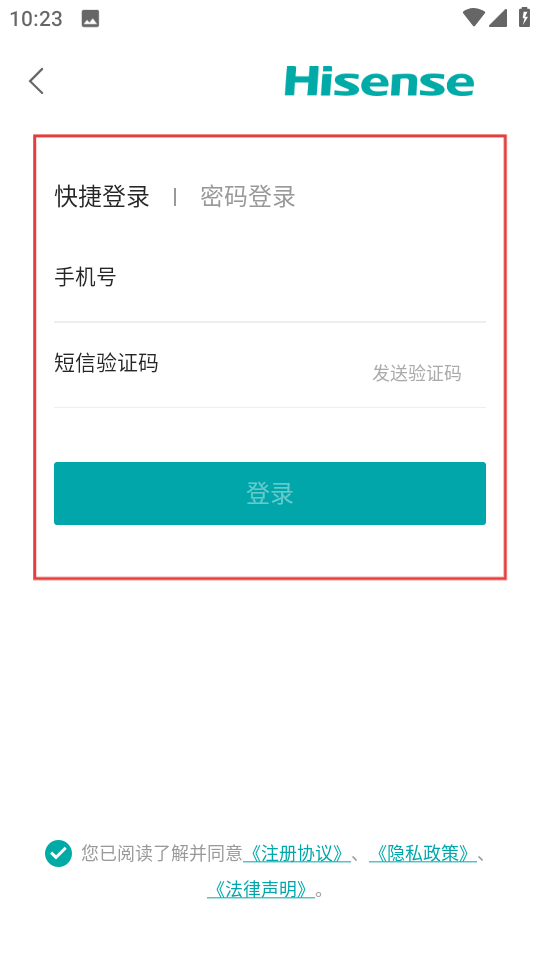 3、選擇快捷登錄方式,填入手機(jī)號碼及驗(yàn)證碼,點(diǎn)擊登錄即可完成操作。