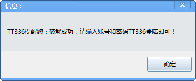 3、會(huì)提示破解成功,輸入賬號(hào)密碼TT336登錄即可。