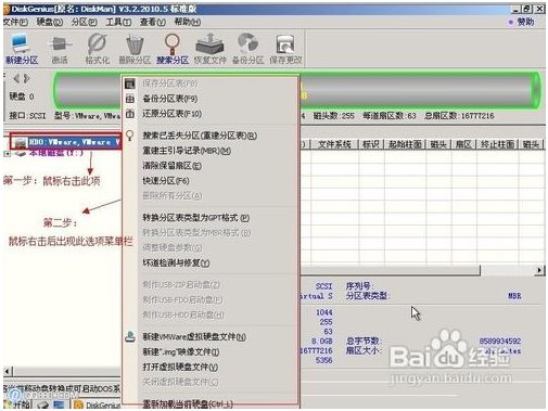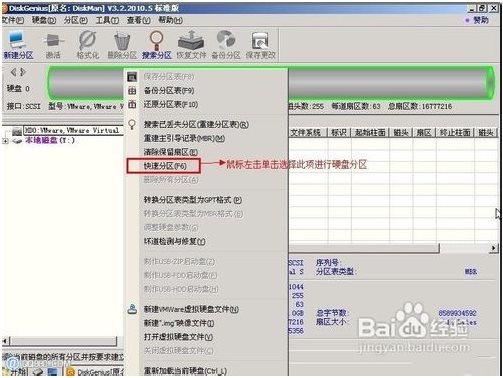 2、鼠標(biāo)放在所要分區(qū)的硬盤上面,鼠標(biāo)右擊會(huì)出現(xiàn)硬盤操作的選擇菜單。
