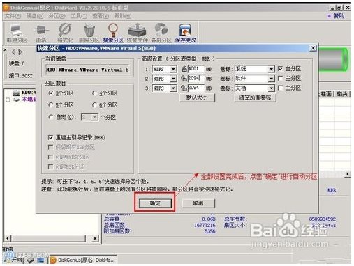 8、設(shè)置分區(qū)容量完畢,點(diǎn)擊確定。然后就是分區(qū)開始了,等待分區(qū)完成即可。