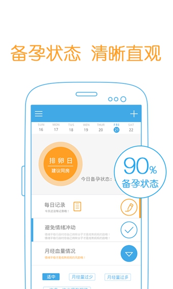 5.首頁即顯示當(dāng)日備孕狀態(tài),實(shí)時直觀了解生理狀態(tài);