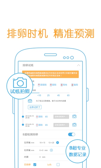 【測排卵】 專業(yè)B超監(jiān)測、試紙拍照記錄,智能分析、永久儲存,滿足備孕記錄全需求;