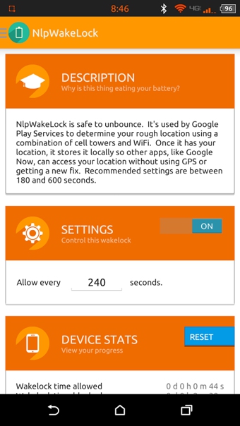喚醒控制Unbounce讓您能控制您的設備多久喚醒一次及每次保持喚醒多長時間,從而控制您設備對電池的使用。使用推薦設置來簡單地保存電量,或者深挖和自定義每一項喚醒和喚醒鎖設置。 祝您的電池能夠使用更長的時間!【軟件特點】