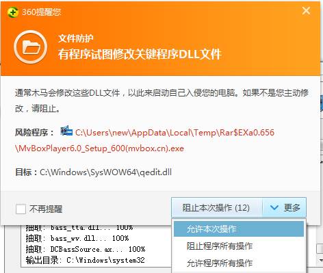 若您安裝了360安全衛(wèi)士,可能出現(xiàn)如下提醒窗口,選擇“允許本次操作”即可。