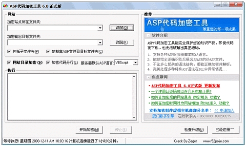 ASP代碼加密工具全球最好的一款A(yù)SP代碼加密工具,她能完全保護(hù)您的知識(shí)產(chǎn)權(quán),即使代碼被下載,也無(wú)法出真正源碼,完美的解析處理,絕對(duì)是您加密ASP代碼的唯一選擇。