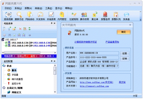 【網(wǎng)路崗.第六代】是一款廣泛使用且很專業(yè)的網(wǎng)絡(luò)監(jiān)控軟件產(chǎn)品,經(jīng)過五年的升級換代,目前已發(fā)展到第六代,產(chǎn)品功能和穩(wěn)定性得到豐富和加強(qiáng),在同類產(chǎn)品中擁有很高的知名度,并得到廣大用戶的好評,是一款解決企業(yè)/學(xué)校網(wǎng)絡(luò)安全的十分受歡迎的產(chǎn)品。我們有一支經(jīng)驗(yàn)豐富的研發(fā)隊(duì)伍,不斷探索最新的網(wǎng)絡(luò)監(jiān)控、網(wǎng)絡(luò)管理技術(shù),不久將來,更完美、更強(qiáng)大的監(jiān)控軟件產(chǎn)品將呈現(xiàn)給廣大用戶。