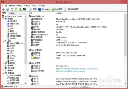 三、使用AIDA64查看CPU詳細信息