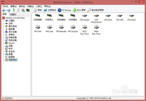 AIDA64中文版的軟件測試功能強大而且豐富,可以測試內存和CPU的基本性能。例如CPUQueenCPUQueen是測試CPU的分支預測能力,以及預測錯誤時所造成的效能影響。MemoryBenchmark功能可以很清楚的看到內存以及性能的參數。