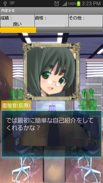 《面試少女 內(nèi)定少女~とある少女の內(nèi)定物語(yǔ)~》是一款從常有趣的模擬面試類的游戲,在這款游戲中你要去參加一場(chǎng)面試,游戲流程很短,結(jié)局很多、分支雷人、只要你好好體驗(yàn),就能感受到其中的樂趣!