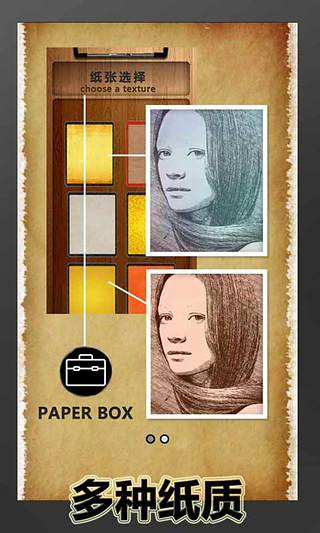 1、左右方向按鈕可以切換12種不同的風(fēng)格:鉛筆素描、懷舊素描、時(shí)光機(jī)、鉛筆淡彩。2、另有多種紙張風(fēng)格可選,配合不同的素描風(fēng)格,精彩浮現(xiàn)指端!