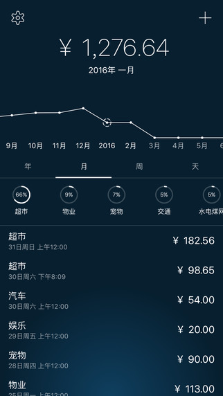 5coins的美輪美奐時(shí)間軸是它的特色之一,通過(guò)時(shí)間軸我們能夠直觀的觀察到我們的開(kāi)銷(xiāo)狀況。不同的時(shí)間段搭配不同的背景色彩,這樣 5coins 的漸變效果也頗有喜感。而在信息傳遞上,日期和每日消費(fèi)金額突顯,其余功能按鍵都以最簡(jiǎn)單的圖標(biāo)形式圍繞。所有設(shè)計(jì)都圍繞著「簡(jiǎn)單就是效率」的原則,然而這卻并不妨礙美感的傳達(dá)。