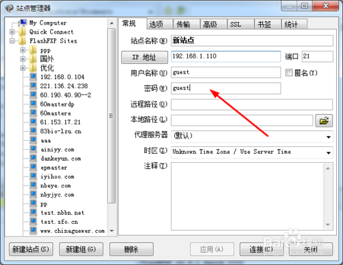 如果要將站點進行分類,可以點擊“新建組”再把站點加入到相應(yīng)的文件組。