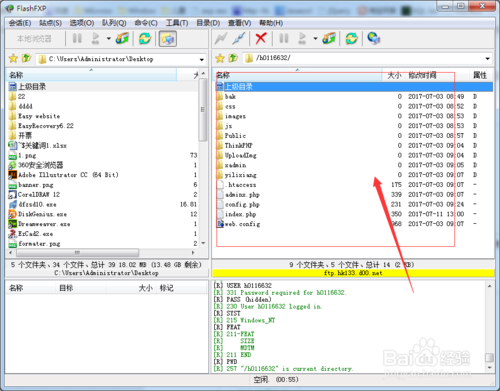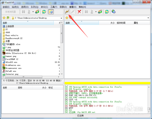 打開軟件,先熟悉一下軟件界面,左側(cè)為本地電腦目錄,右側(cè)為服務(wù)器上的目錄。