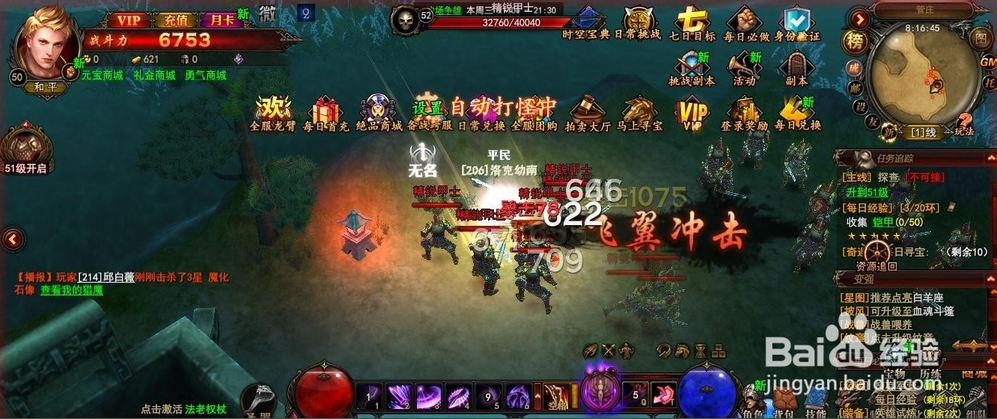 這些是每天必做的經(jīng)驗活動,而其余空閑時間,就可以去根據(jù)自己的等級和戰(zhàn)斗力去野外掛機刷怪了。刷怪看似經(jīng)驗少,但是如果有足夠的戰(zhàn)力支撐,一個小時所累積下來的經(jīng)驗也是非??捎^的。
