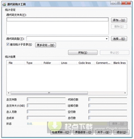 源代碼統(tǒng)計(jì)工具 V2.5.5.9 簡(jiǎn)體中文綠色免費(fèi)版 免費(fèi)的源代碼行數(shù)統(tǒng)計(jì)工具,支持20多種代碼格式。具有統(tǒng)計(jì)迅速、準(zhǔn)確的優(yōu)點(diǎn),是程序開(kāi)發(fā)人員的必備工具??梢詫?duì) C++、VB.Net、VB、C#、JAVA、Delphi、ASP.Net、ASP、JSP、PHP、HTML 等項(xiàng)目的代碼行數(shù)、工數(shù)和成本進(jìn)行統(tǒng)計(jì),并能保存統(tǒng)計(jì)的結(jié)果。