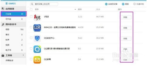 6、如果是軟件更新或者管理,那么點擊上面的 應(yīng)用管理,這里有卸載,升級,刪除等。