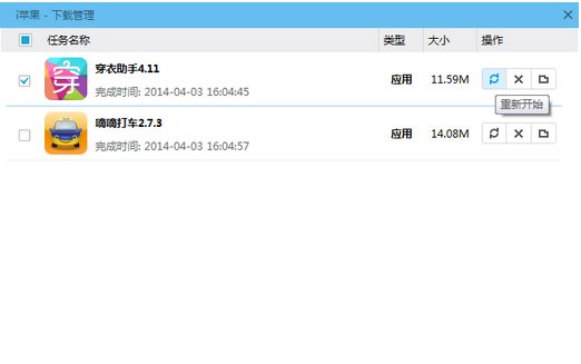 1、蘋果設(shè)備(iPhone、iPad等)空間不足。通常軟件安裝所需的空間是程序標(biāo)注的安裝包大小的3倍。如果蘋果設(shè)備的空間不足,請先清理垃圾文件或刪除不需要的軟件,騰出安裝空間。 2、安裝文件損壞或不存在。請在i蘋果電腦版的右下角點擊“下載管理”,然后重新下載該軟件/游戲。