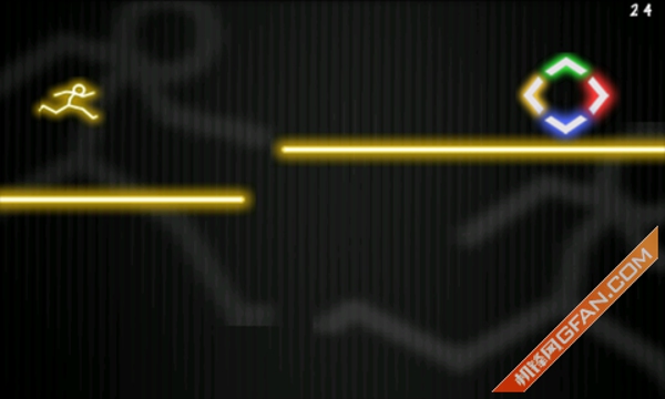 《炫光跑酷 Glow Runner》是一款火柴人跑酷的敏捷游戲。游戲中你需要控制火柴人在一條軌道線上奔跑,在奔跑的過程中你需要隨時準(zhǔn)備調(diào)整火柴人身上的顏色,以適應(yīng)各種致命光線。具體的調(diào)節(jié)可以通過向不同的方向滑動屏幕來變換火柴人的顏色。右上角的那四個顏色按鈕表示四個滑動的方向。喜歡的玩家趕快下載試試吧!