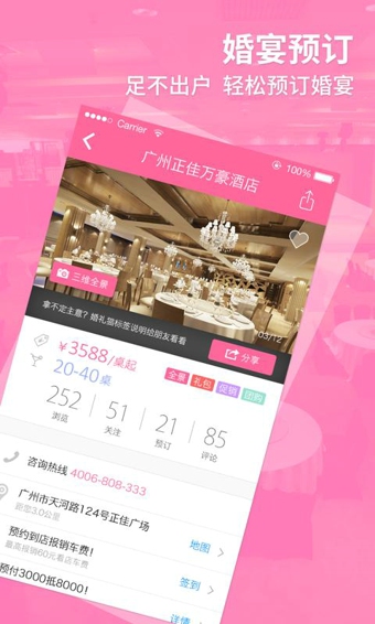 ·服務(wù)免費(fèi):全程1對(duì)1專(zhuān)業(yè)顧問(wèn)服務(wù),免費(fèi)婚宴場(chǎng)地預(yù)訂咨詢(xún),千家酒店對(duì)比,為您省心又省事!