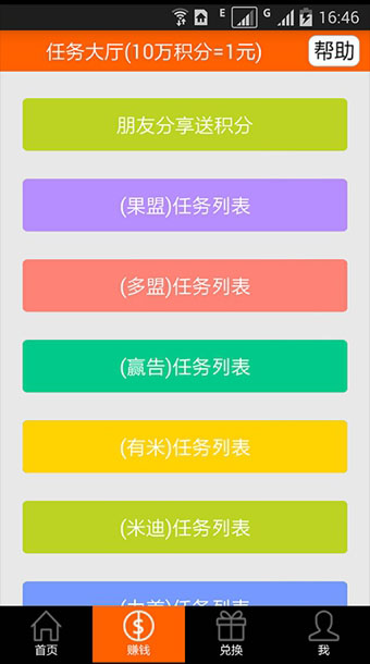 用戶可以通過完成應(yīng)用提供的下載并體驗軟件,分享應(yīng)用,參與調(diào)研,體驗廣告等任務(wù)類型獲取積分,并通過應(yīng)用提供的支付寶、財付通、話費(fèi)、Q幣等兌換通道進(jìn)行提現(xiàn)!