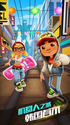 地鐵跑酷首爾版是一款休閑的跑酷游戲。該游戲場景為韓國首都首爾,玩家可以帶領(lǐng)游戲中的人物在首爾街道上盡情的奔跑,感受異國風(fēng)情。該版本為修改版。