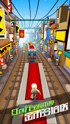 《地鐵跑酷》是一款3D建模Q版美漫風(fēng)格的跑酷類休閑手游。游戲的背景設(shè)定在地鐵鐵軌上,玩家要幫助Jake和淘氣的小伙伴們躲避警察的追捕,躲避障礙物與往來的地鐵。調(diào)皮惡搞的設(shè)定、嬉皮卡通的畫風(fēng)以及緊張刺激、停不了手的操作體驗,使得《地鐵跑酷》成為一款品質(zhì)較高、氣質(zhì)獨特同時又符合大眾訴求、內(nèi)涵與玩法可深挖的誠意作品。