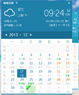 哈哈日歷下載是一款簡潔清爽的電腦桌面日歷應(yīng)用軟件。該軟件小巧且綠色無公害,不僅擁有天氣預(yù)報查詢、節(jié)假日及放假安排查詢等功能,還可以根據(jù)日歷來記事,實(shí)用又方便。
