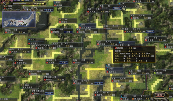 1、游戲承襲《革新》采用的即時制系統(tǒng),并加入可越過國境來蠶食他國領(lǐng)土的“村落系統(tǒng)”,以及組合魚鱗或鶴翼等“陣形”在戰(zhàn)場上一齊施展的“戰(zhàn)法連攜攻擊”等新要素。并導(dǎo)入扮演各地有名諸侯以“地方統(tǒng)一”為目標(biāo)展開廝殺的“群雄爭霸模式”。2、有別于以往系列作以整國為單位的統(tǒng)治模式,新加入的“村落系統(tǒng)”讓玩家可以逐步蠶食敵方的國土,將國境之外的村落以“街道”與我方城池聯(lián)系并加以統(tǒng)治。統(tǒng)治村落不但可以提供金錢與士兵,還可以借此來奪取強化我方勢力所必需的資源與技術(shù)。