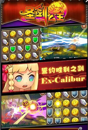 下方的棋盤(pán)就是消除部分,棋盤(pán)上方時(shí)戰(zhàn)斗部分,玩家消除3把以上的劍或水晶劍就會(huì)攻擊怪物,消除3個(gè)以上的盾牌就會(huì)給角色增加防御,抵消怪物的傷害,消除3個(gè)以上紅星就會(huì)給角色加血,消除3個(gè)以上的金幣或金磚就會(huì)增加金幣。【游戲特色】