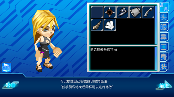 選擇后,就跳到角色創(chuàng)造界面中選擇道具了!