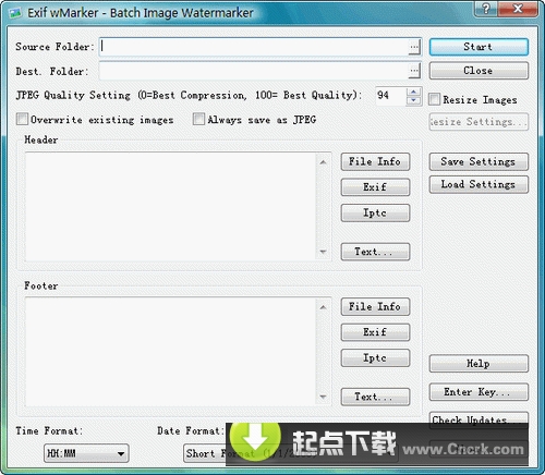 Exif wMarker是一款操作簡單,界面友好的圖像水印軟件,支持批量處理 ,,軟件支持的文件類型為JPEG和TIFF。而且只會從JPEG文件中讀取IPTC信息標(biāo)簽。大部分的Exif標(biāo)記將被復(fù)制到被加水印的圖像中,但所有iptc標(biāo)記將被刪除。