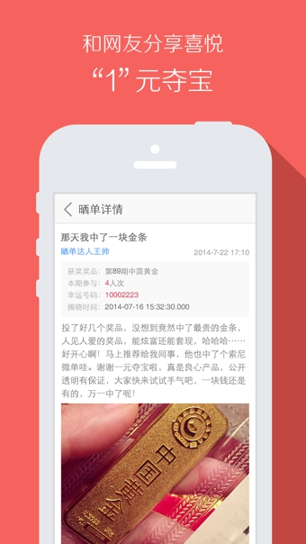 網(wǎng)易官方出品,給1元一個(gè)機(jī)會(huì),玲瑯滿目的商品任你挑選。1、趣味活動(dòng)方式:只花1元就能獲得價(jià)值過(guò)萬(wàn)的獎(jiǎng)品,運(yùn)氣和實(shí)力并存;