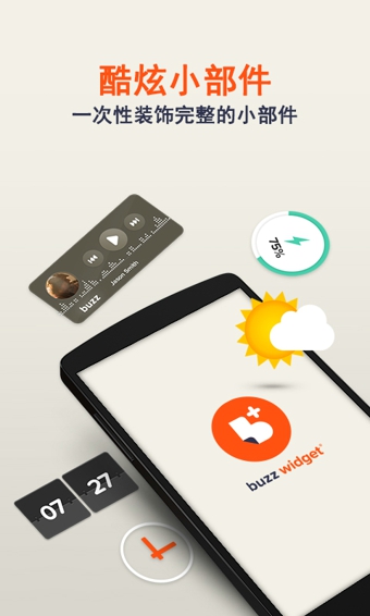 1.制作各種小部件: 通過Buzz小部件可制作天氣,音樂,時鐘,電池,圖片等多種小部件。