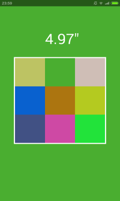 選擇界面游戲難度和模式進入;點擊開啟的游戲關(guān)卡進入畫面;玩法很簡單,點擊與背景色相同的格子即可消除;游戲中看誰時間最短,那么來挑戰(zhàn)吧!