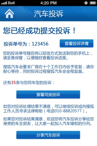 汽車投訴解決率高達(dá)95%的投訴平臺(tái),無良商家曝光、快捷發(fā)起投訴、輔助購車決策,搜狐汽車投訴統(tǒng)統(tǒng)可以幫您解決。您的愛車出現(xiàn)過各種煩心異響不斷的問題嗎?您有過在4S店不愉快的消費(fèi)經(jīng)歷嗎?您有維權(quán)過程中有法不會(huì)用的困惑嗎?