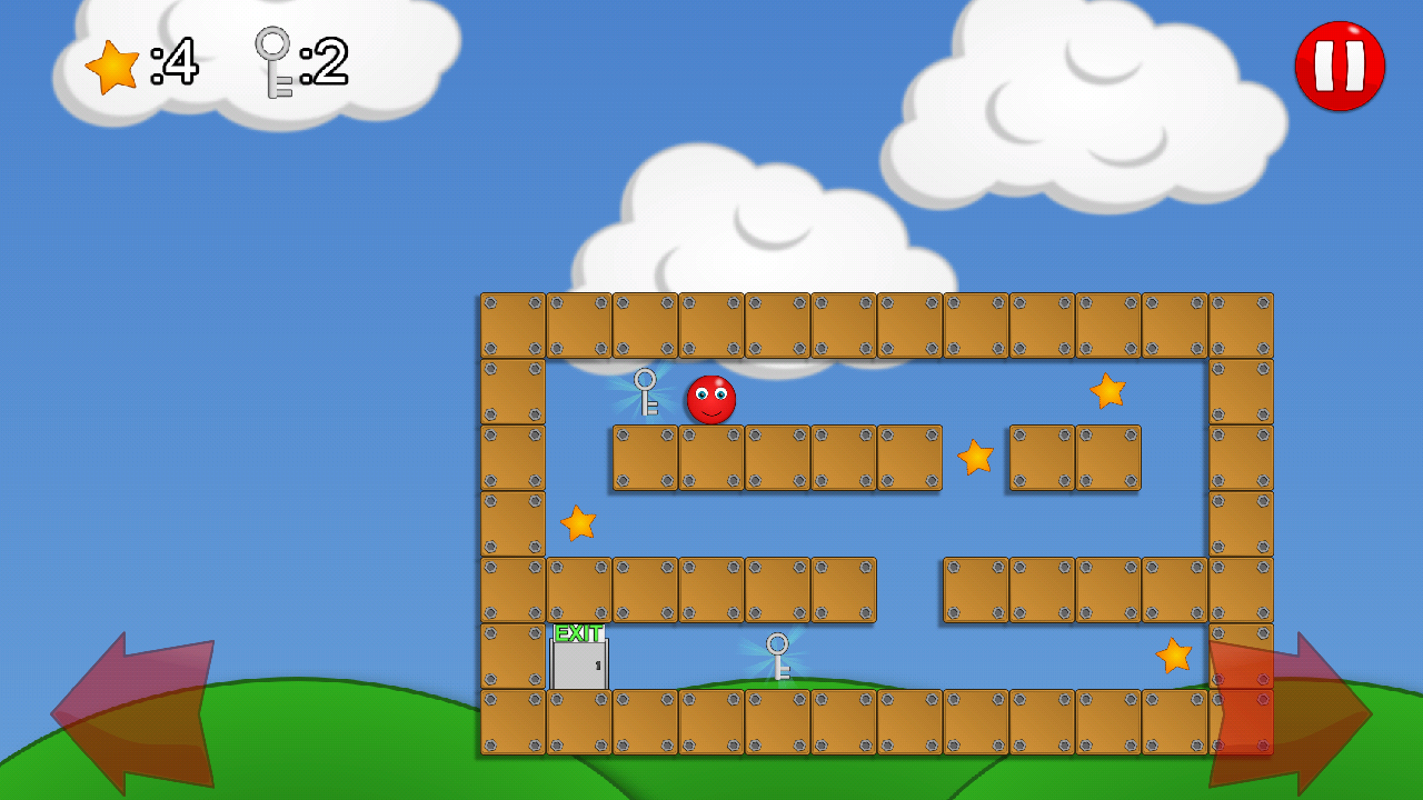 紅球找出路安卓版玩法非常簡單: 左右移動紅球 撿齊鑰匙和星星 即可到出口通關(guān) 可用方向按鈕移動小球 或者利用手機的重力感應(yīng)系統(tǒng)移動小球!