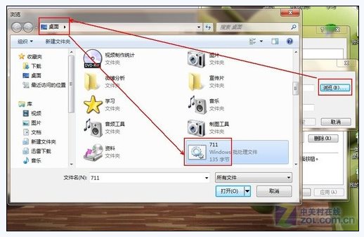 瀏覽本地存儲路徑,前面我們已經(jīng)創(chuàng)建的711批處理文件直接放到了桌面上,現(xiàn)在只需要到桌面路徑下來查找即可,如下圖所示,找到711批處理文件點擊打開之后,點擊確認到了關機腳本中,在關機腳本控制窗口上,我們點擊應用--確定退出窗口。