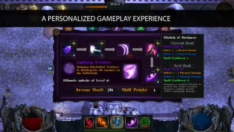 游戲的操控相對簡單易懂,點擊敵人即可對其施放咒語,隨著游戲進(jìn)程的發(fā)展還能解鎖更多特殊技能,咒語分為4大類,共有20種不同技能。游戲雖然屬于動作塔防,但也融入了不少RPG元素,游戲中玩家可以升級角色和裝備來提升戰(zhàn)斗力。