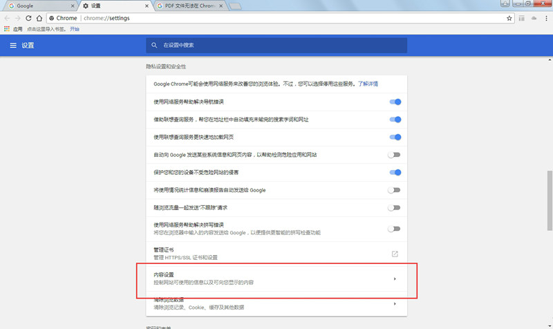 在地址欄中輸入 谷歌瀏覽器(Google Chrome)://settings/content。