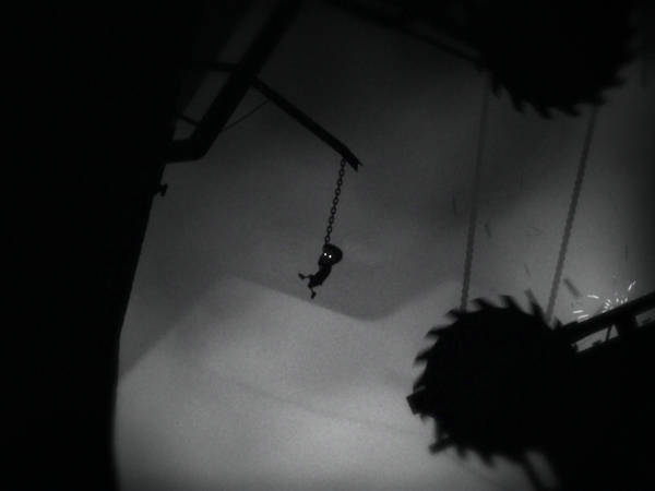 《Limbo》的難度著實不低。游戲基本上沒有任何的引導(dǎo)與提示,黑白的場景極容易讓人忽略關(guān)卡中的陷阱和道具,而謎題的設(shè)置與警示往往直接融入自然之中,比如巨石滾動之前,就會有碎石子先落下。因此想要順利過關(guān),就需要玩家有敏銳的觀察力和強大的邏輯推理能力,看似走投無路之時,不妨回過頭,看看場景中有哪些地方顯得突兀,這些細微的不同尋常之處,往往就是解開謎題的關(guān)鍵。否則,你就只能在黑白的世界中不斷徘徊。
