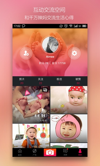 媽蜜,媽媽的甜蜜生活!專注圖片分享交流的辣媽社區(qū)。寶媽美媽拍照記錄寶寶成長(zhǎng),與辣媽閨蜜交流育兒經(jīng)驗(yàn),身為女人,陪伴寶貝,擁有閨蜜姐妹,扮靚自己,做成熟不失美麗時(shí)尚的女性